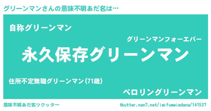 | 男性向けラノベタイトル風あだ名 | 『グリーンマンという概念が存在しない退屈な世界 』 |