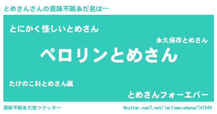 | 自動車の名前っぽいあだ名 | 『トメティマ』『トルトメパン』 |