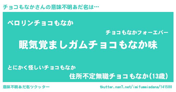 | 女子向けラノベタイトル風あだ名 | 『チョコもなか恋絵巻』 |