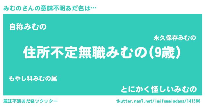 | 男性向けラノベタイトル風あだ名 | 『魔弾の王とみむの』 |