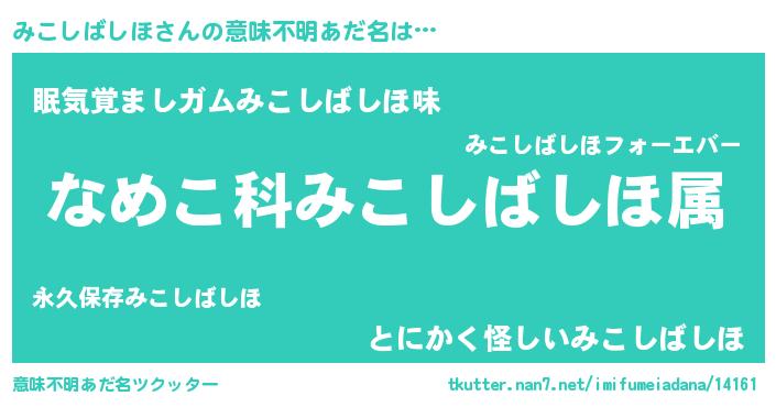 | 料理風あだ名 | 『みこしばしほごはん』 |