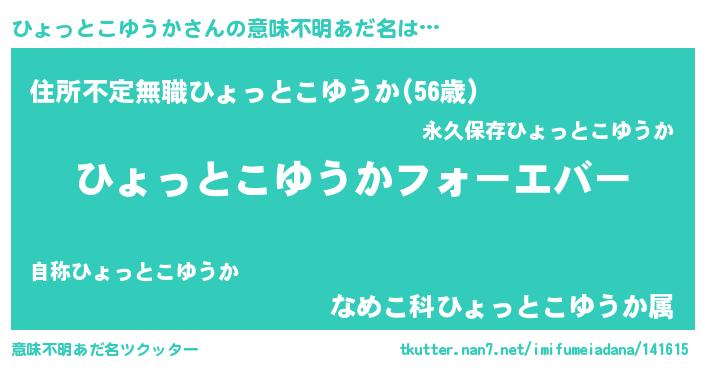 | 男性向けラノベタイトル風あだ名 | 『やはりひょっとこゆうかの青春ラブコメはまちがっている 』 |