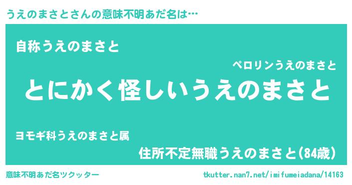 | 欧米人風あだ名 | 『ウサインうえのまさと』 |