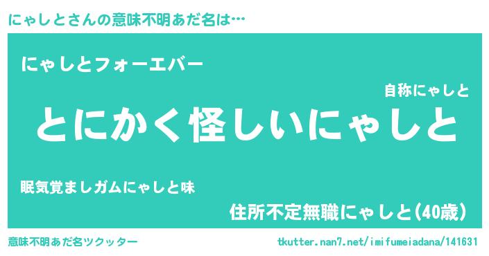 | 女子向けラノベタイトル風あだ名 | 『にゃしとは平凡を望む』 |