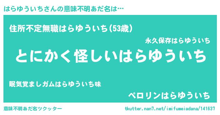 | 男性向けラノベタイトル風あだ名 | 『はらゆういちの嫁は女の子じゃないと思った?』 |
