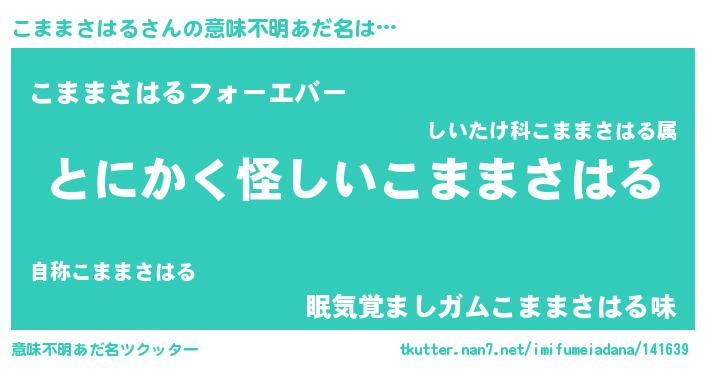 | 男性向けラノベタイトル風あだ名 | 『こままさはるの嫁は女の子じゃないと思った?』 |