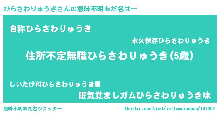 | 胡散臭い通販商品みたいなあだ名 | 『あなたにだけ特別に提供する100年もののヴィンテージワイン…その名も「ひらさわりゅうき」』 |