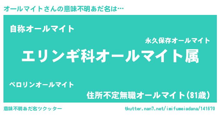 | 男性向けラノベタイトル風あだ名 | 『オールマイトスレイヤー』 |