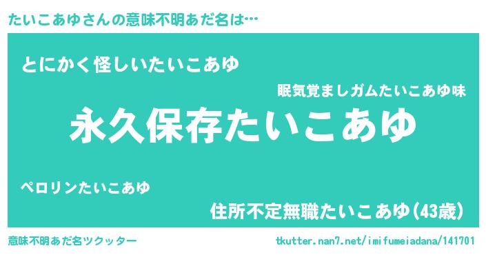 | 胡散臭い通販商品みたいなあだ名 | 『前代未聞の水素水…その名も「たいこあゆ」』 |