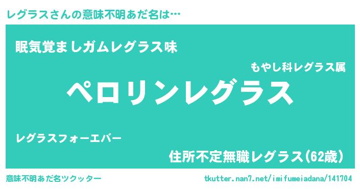 | 男性向けラノベタイトル風あだ名 | 『レグラスの憂鬱』『レグラススレイヤー』 |
