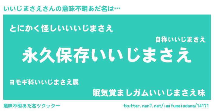 | 胡散臭い通販商品みたいなあだ名 | 『来世でも幸せになれる水素水…その名も「いいじまさえ」』 |
