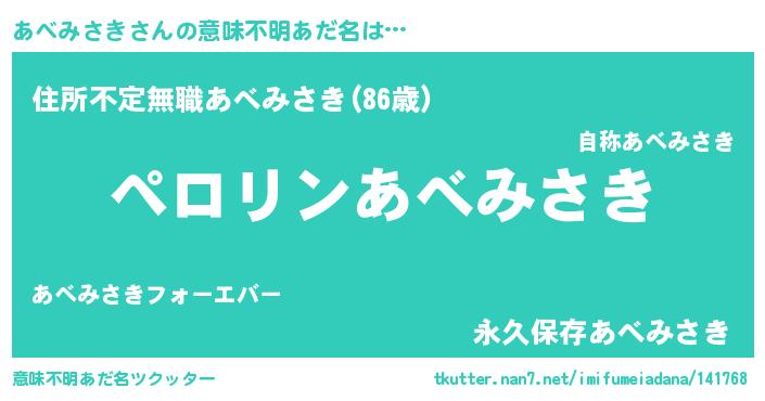 | 男性向けラノベタイトル風あだ名 | 『アベミサキアートオンライン』 |