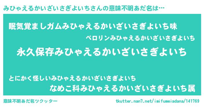| ヘコむあだ名 | 『みひゃえるかいざいさぎよいち(笑)』 |