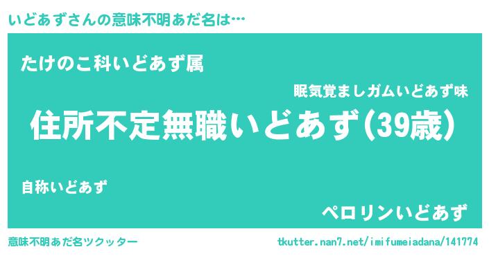 | 男性向けラノベタイトル風あだ名 | 『魔弾の王といどあず』『いどあずの憂鬱』 |