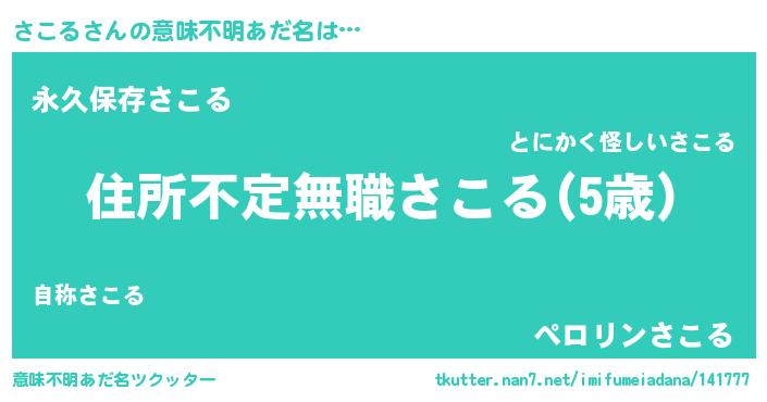 | ヘコむあだ名 | 『さこる(小並感)』『さこふぇ~』 |