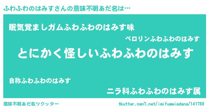 | 女子向けラノベタイトル風あだ名 | 『ふわふわのはみす様がみてる』 |