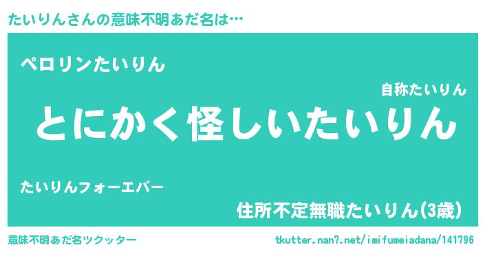 | 男性向けラノベタイトル風あだ名 | 『たいりんの嫁は女の子じゃないと思った?』 |