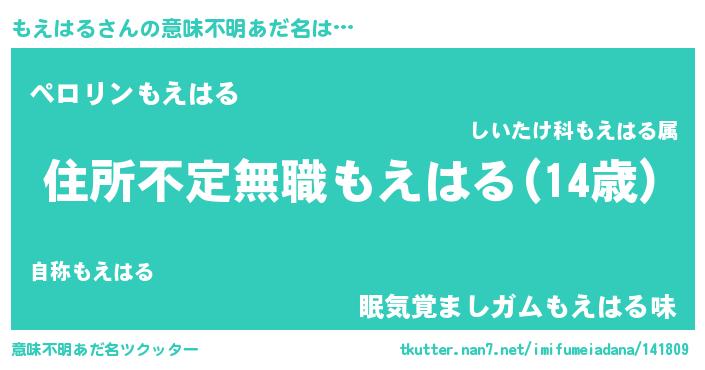| 男性向けラノベタイトル風あだ名 | 『魔弾の王ともえはる』『もえはるの憂鬱』 |