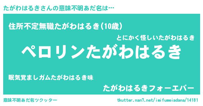 | 胡散臭い通販商品みたいなあだ名 | 『必ず成功するブレスレット…その名も「たがわはるき」』 |
