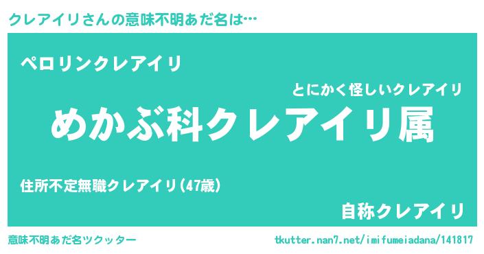 | 料理風あだ名 | 『クレアイリごはん』 |