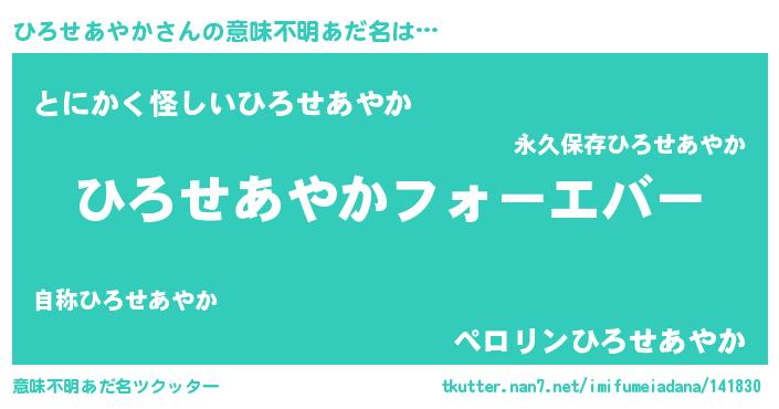 | ポケモン風あだ名 | 『ヒロセダネ』『ヒヒロセアヤカ』 |