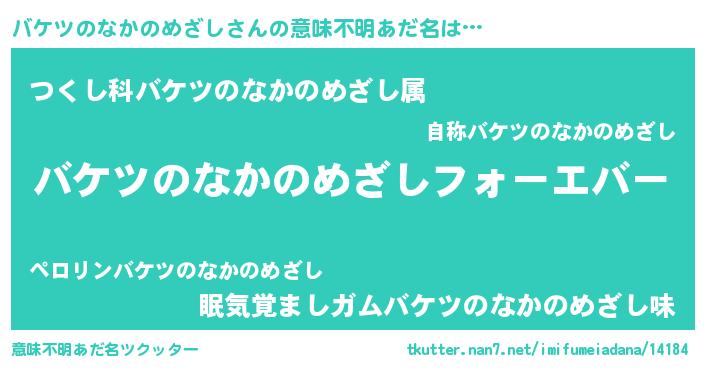 | ファンタジー風あだ名 | 『エターナルバケツノナカノメザシー』 |