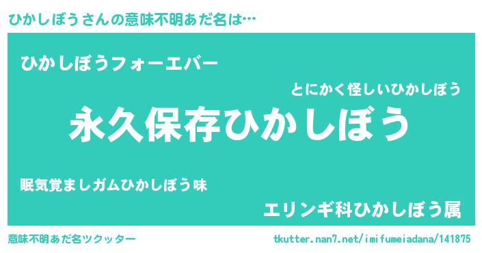 | 男性向けラノベタイトル風あだ名 | 『ひかしぼうという概念が存在しない退屈な世界 』 |