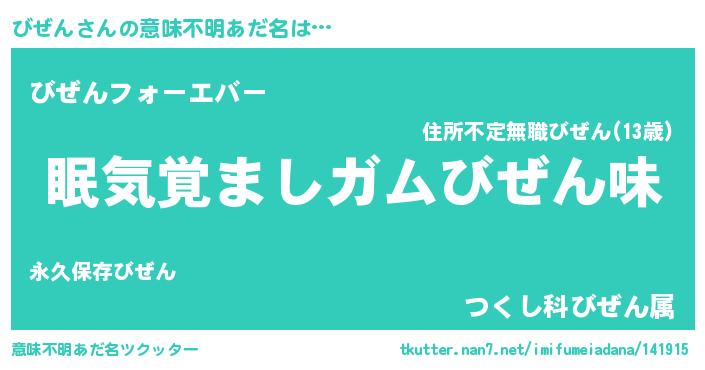 | ヒーロー風カッコイイあだ名 | 『天空の使者びぜん』『仮面ビゼダー』 |