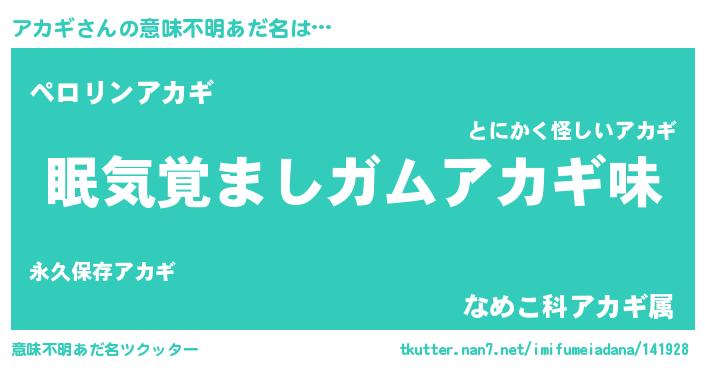 | 女子向けラノベタイトル風あだ名 | 『アカギ恋絵巻』『アカギ姫と円卓の騎士』 |