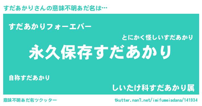 | 男性向けラノベタイトル風あだ名 | 『すだあかりという概念が存在しない退屈な世界 』 |