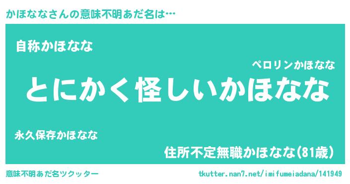 | 胡散臭い通販商品みたいなあだ名 | 『信頼と実績のサプリメント…その名も「かほなな」』 |