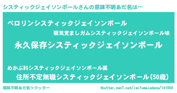| ヘコむあだ名 | 『システィックジェイソンポール(小並感)』 |
