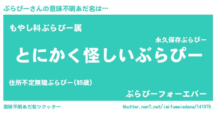 | 女子向けラノベタイトル風あだ名 | 『ぶらぴーの卵を拾いまして』 |