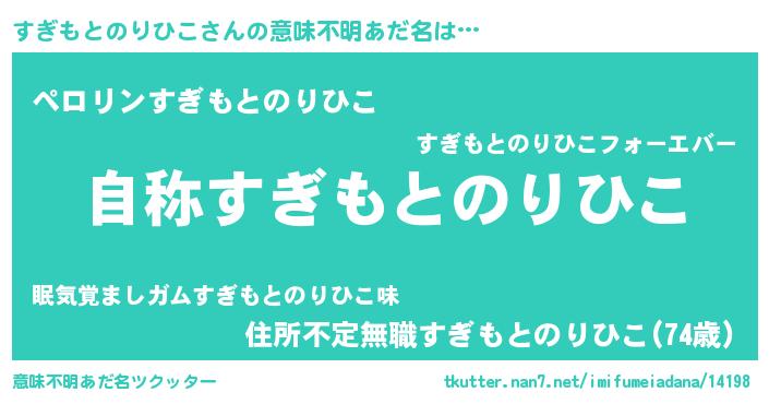 | 胡散臭い通販商品みたいなあだ名 | 『ガンによく効く高麗人参…その名も「すぎもとのりひこ」』 |