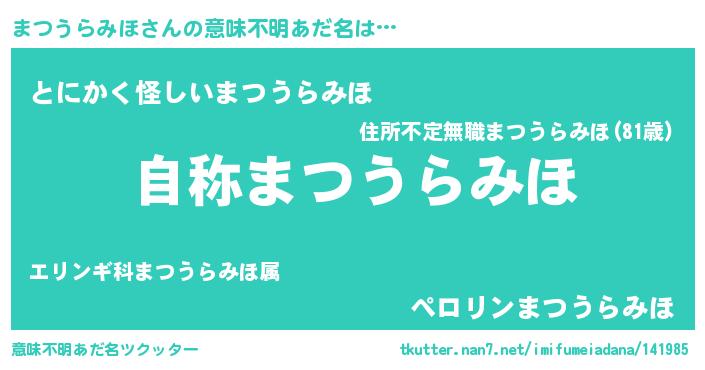 | 男性向けラノベタイトル風あだ名 | 『Re:まつうらみほから始める異世界生活』 |