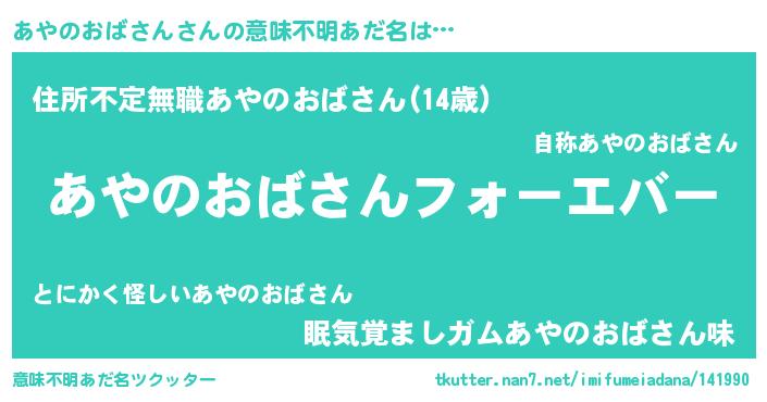 | ファンタジー風あだ名 | 『エターナルアヤノオバサンー』 |