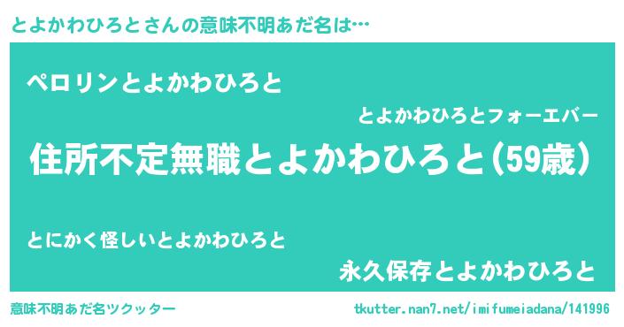 | ヘコむあだ名 | 『とよにゅー』『とよかわひろと(小並感)』 |