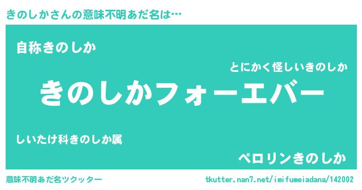 | 女子向けラノベタイトル風あだ名 | 『きのしかの雑貨屋さん』『闇のきのしか』 |