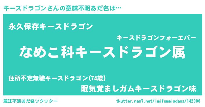 | 男性向けラノベタイトル風あだ名 | 『転生したらキースドラゴンだった件』 |
