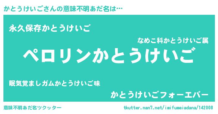 | 男性向けラノベタイトル風あだ名 | 『カトウケイゴアートオンライン』 |