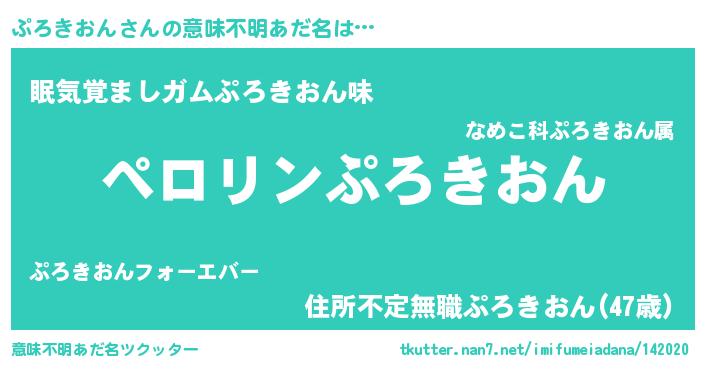 | 男性向けラノベタイトル風あだ名 | 『ぷろきおんの憂鬱』 |