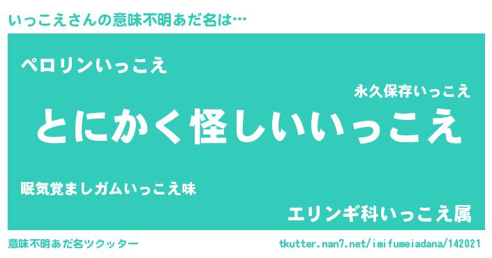 | 男性向けラノベタイトル風あだ名 | 『いっこえの嫁は女の子じゃないと思った?』 |