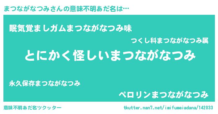| 胡散臭い通販商品みたいなあだ名 | 『信頼と実績のペンダント…その名も「まつながなつみ」』 |