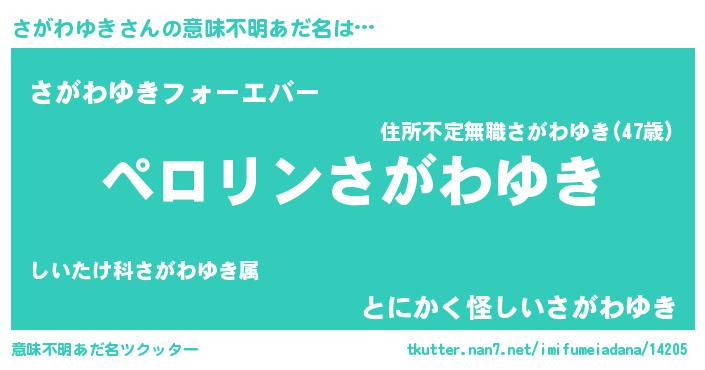 | 胡散臭い通販商品みたいなあだ名 | 『必ず成功するブレスレット…その名も「さがわゆき」』 |