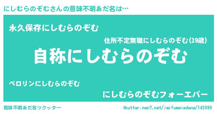 | ヘコむあだ名 | 『にしむらのぞむ(笑)』『豆乳』 |