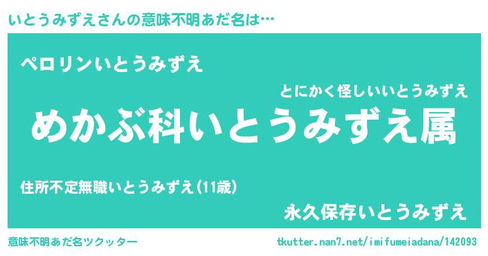 | 男性向けラノベタイトル風あだ名 | 『イトウミズエスレイヤー』 |