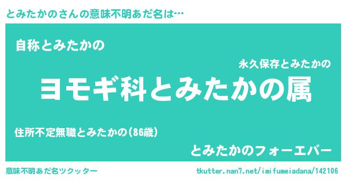| 女子向けラノベタイトル風あだ名 | 『とみたかのの玉の輿計画!』 |