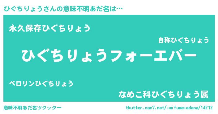 | 欧米人風あだ名 | 『ひぐちりょうクリステル』 |