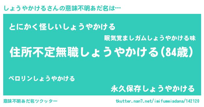 | 胡散臭い通販商品みたいなあだ名 | 『あなたにだけ特別に提供する世界で10本だけ現存している希少なブランデー…その名も「しょうやかける」』 |
