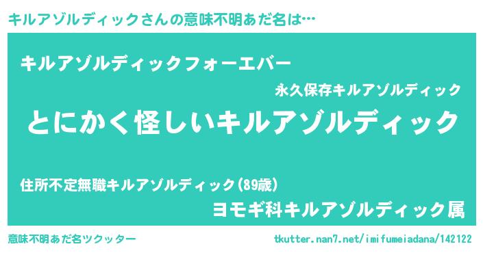 | 胡散臭い通販商品みたいなあだ名 | 『信頼と実績のサプリメント…その名も「キルアゾルディック」』 |